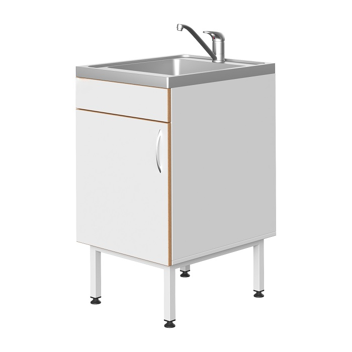 Тумба мойки изготовлена из влагостойкого ДСП белого цвета. Края срезов закрыты кромочным пластиком ПВХ (цвета бук в стандартной комплектации) толщиной 2 мм. ДСП имеет пропитку парафиновой смолой сине-зелёного цвета для предотвращения разбухания под воздействием влаги.