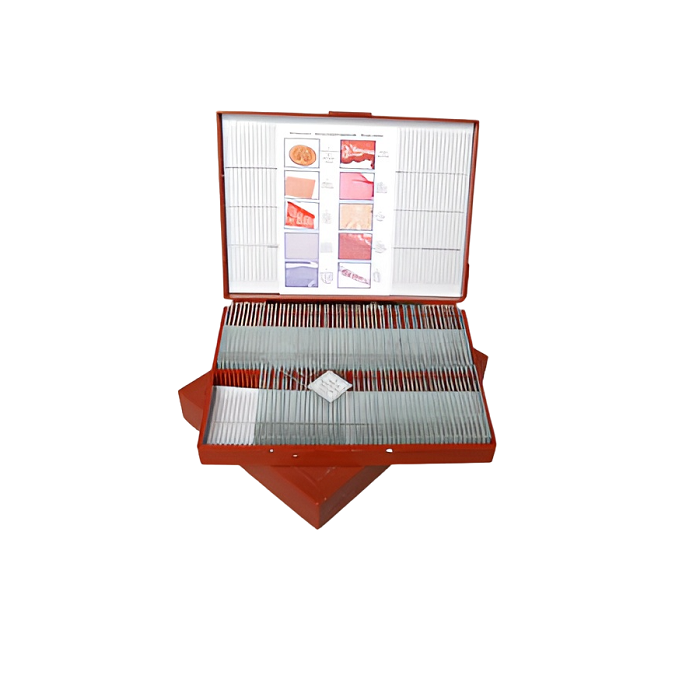 Предназначен для проведения широкого спектра лабораторных работ, направленных на изучение биологических объектов на клеточном и гистологическом уровнях. Снабжен экспликацией на русском и английском языках. При необходимости препараты окрашены, что делает их детали более контрастными. Комплект содержит методические рекомендации по проведению лабораторных работ, снабженные иллюстрациями, на которых показано, какие детали препарата можно рассмотреть и какое увеличение рекомендуется для этого использовать.