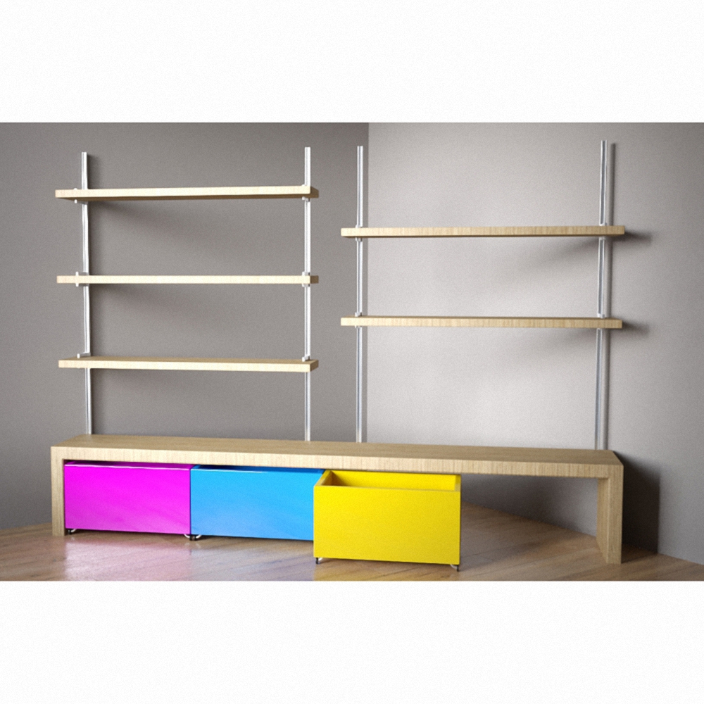 Детский стеллаж выполнен в ярких цветах, что подходит как мальчикам, так и девочкам.